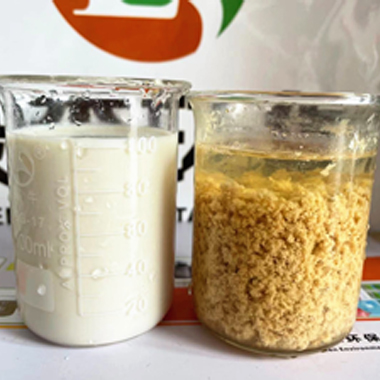 綠森環(huán)保技術(shù)團(tuán)隊(duì)?wèi)?yīng)某化妝品客戶要求上門技術(shù)服務(wù),現(xiàn)場(chǎng)給客戶廢水破乳劑中試。客戶廢水:沐浴露廢水,特點(diǎn):含有乳化劑、增稠劑、抗氧化劑、防腐殺菌劑和香精色素等,廢水顏色:淺黃色。使用破乳劑破乳后廢水上清液清澈透明,如下圖       &nbs···